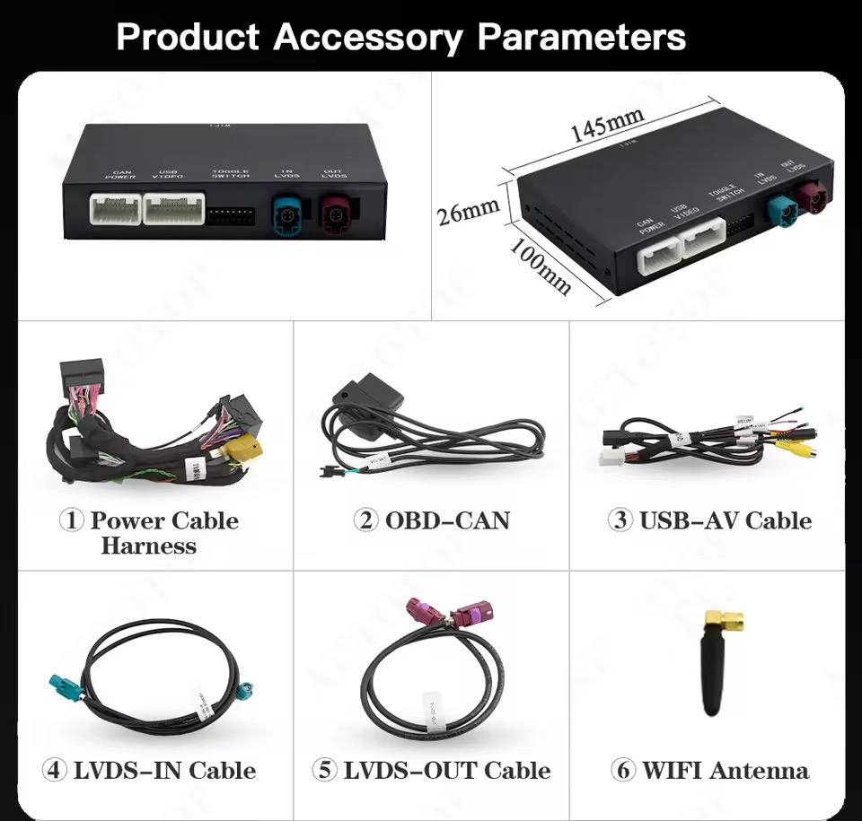 Modulul permite accesul la Apple CarPlay, Android Auto, MirrorLink, precum și redare de video și audio prin USB – toate direct pe display-ul original al mașinii, fără a schimba unitatea centrală.
