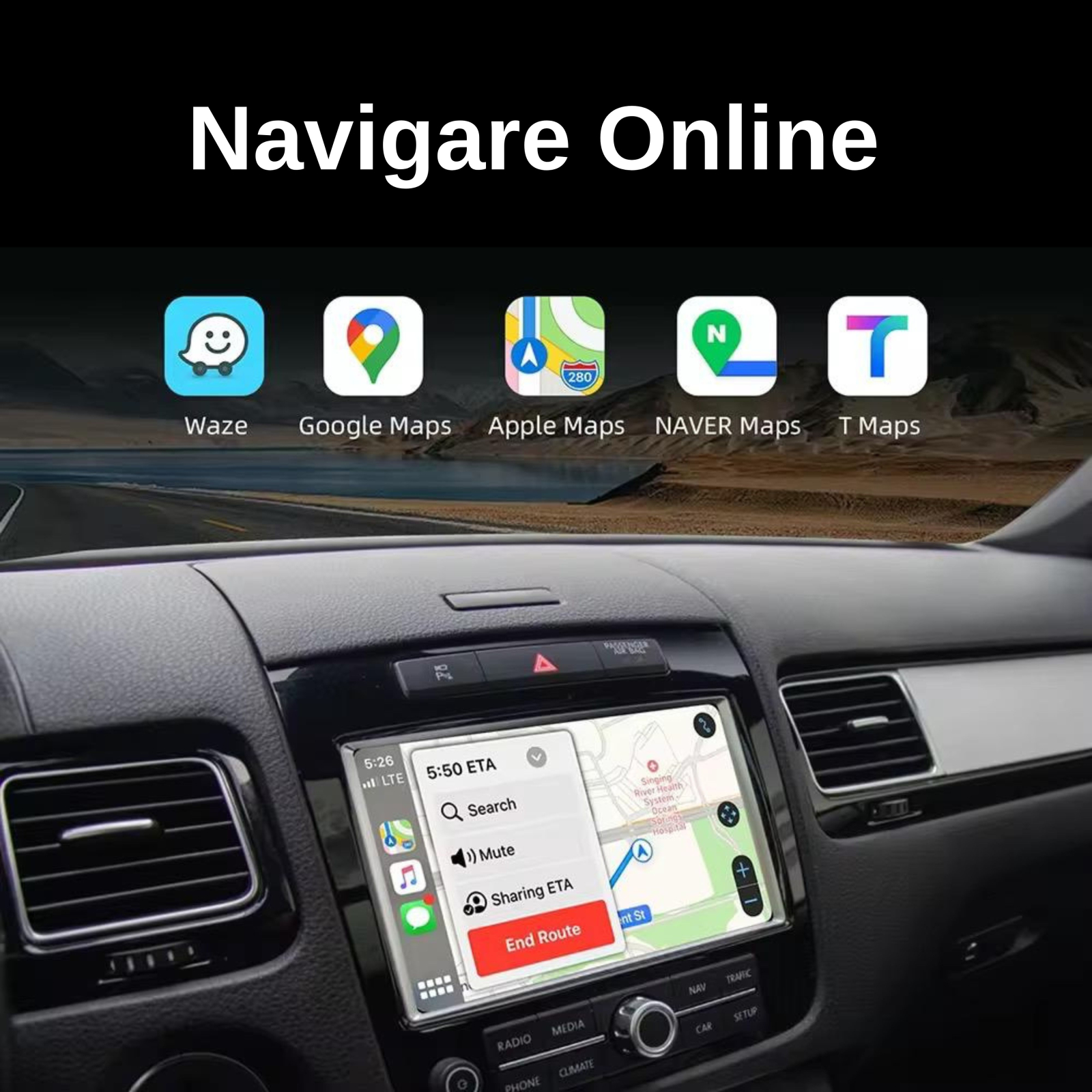 Apple CarPlay și Android Auto: Acces direct la aplicații populare precum Waze, Google Maps, Spotify, YouTube Music, WhatsApp, Telefon, Mesaje etc.